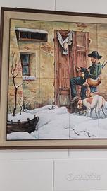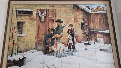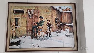 Quadro dipinto a mano su ceramica, ritorno dalla caccia. Per esterno, interno e/o taverna vendo prezzo simbolico di 100 euro. Misure 137 larghezza x 95 altezza.