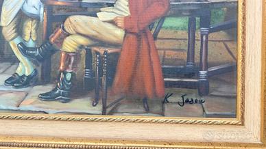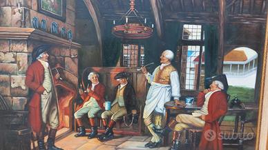 Il dipinto raffigura una scena d'interni, probabilmente in una locanda, con quattro uomini in abiti del XVIII secolo.