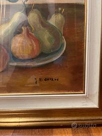 Vendo quadro dipinto a olio su tela, firmato J.M. Ortega, raffigurante natura morta con fiori e frutta.