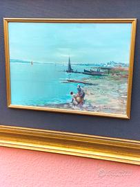 Dipinto su cartone rigido di Arturo verni (lago di Garda ) Scorcio di Desenzano .perfetto e pulito colori molto belli firmato .