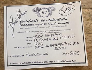 Certificazione di autenticità di dipinto su tela.