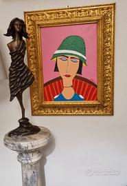 Nicola Masi artista pittore e scultore in Firenze Dipinto (fatto a mano) Titolo dell opera "Charlotte" tecnica mista acrilico su tela, misure interne 30×40 misure esterne 47×57 ,con cornice museale atigianale in legno foglia oro firmato a mano con autocertificazione e timbro opera unica originale. MASI ARTE FIRENZE......................................................