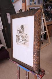 acquerello inchiostro rappresentate una scena de " L' Orlando Furioso" , artista ignoto anni 60, non riesco a decifrare la firma. 32x47 cm + cornice