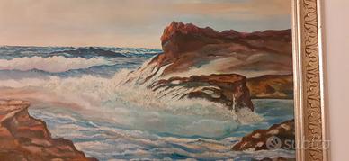 quadro dipinto olio su tela 97x77 d'epoca mare