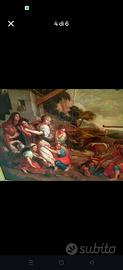 Quadro Dipinto Olio Tela Reintelato Del 700 Mosè Difende La Figlie Di Jetro Misure della tela 76x59 cm info e prezzo in privato