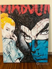 Quadro dipinto su tela “Diabolik e Eva Kant”misure 77x96