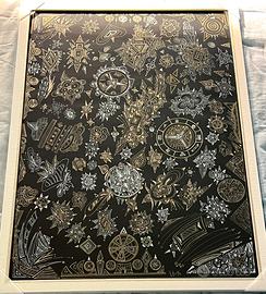 Quadro - Disegno astratto moderno “ Astrattismo “ ,disegno a mano libera con Pilot Oro & Bianco su cartoncino 50x70x1x53x74 + cornice,Pittore78.