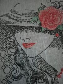 Quadro da me ricamato su lino a punto croce e blackwork con filati mulinè.