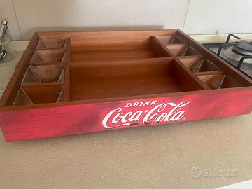 Vassoio in legno con 8 ciotole in vetro.. mai usato e quadro specchio tutto Coca cola € 90