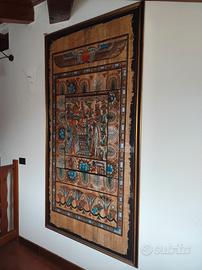 Vendo quadro con papiro dipinto a mano egiziano con cornice e vetro. Come da foto. Misure: Lung. 210x Larg. 110x Sp. 4 cm