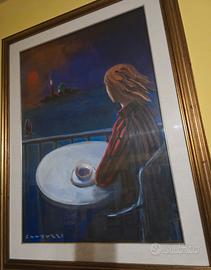 QUADRO ELIANO FANTUZZI "DONNA AL BAR SULLA LAGUNA