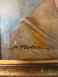 Vendo splendido quadro di Elio Ferrara, "Al Teatro". Olio su tela 60x80 cm, scena di corteggiamento con maschera in stile classico. Opera autenticata con cornice dorata inclusa, in ottime condizioni. prezzo trattabile