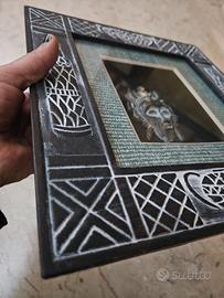 quadro etnico in legno, a teca con vetro di chiusura, al cui interno è apposta una maschera 3d cm.28 x 28