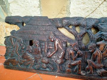 Grande quadro / pannello africano a bassorilievo in legno . Dimensioni: 120 x 38 cm Solo consegna a mano.