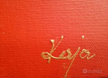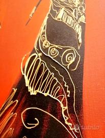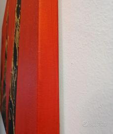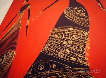Vendo splendido quadro su tela (100x70 cm), un dipinto a mano acrilico raffigurante tre eleganti figure femminili africane. Lo sfondo è un rosso vibrante e intenso, perfetto per dare calore e carattere a un salotto o un ingresso. Il dettaglio che fa la differenza: La vernice dorata dei vestiti e degli accessori è applicata in rilievo (effetto 3D)! ✨ Sotto la luce, i dettagli brillano e creano un effetto tattile unico. Misure: Grande formato 100 x 70 cm, telaio in legno robusto da 3 cm. Pronto da appendere. Stato: Come nuovo, perfetto. Un pezzo d'arte artigianale a un prezzo imbattibile. ✨