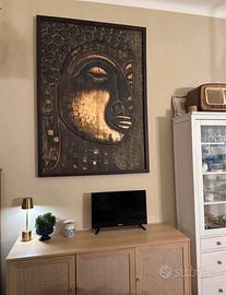 Vendo per cambio arredamento quadro scultura volto Buddha intagliato interamente in legno teak con tratti in oro. Originario balinese. In ottime condizioni, completa la casa con tema resort, orientale ma anche moderno.