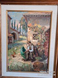 olio su pannello pittore livornese idilio falciani 35x50+cornice. firmato anche sul retro con titolo. ombrellaio toscano