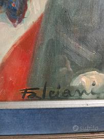 olio su cartoncino del pittore livornese idilio falciani, 20x30+cornice.ritratto presumibilmente del musicista livornese Pietro mascagni. firmato anche sul retro con dedica