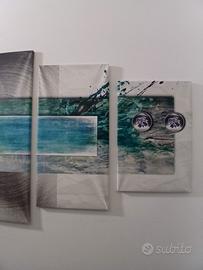 Quadro diviso in 5 pezzi. Struttura in compensato. Due pezzi misurano 60 x 40. Due pezzi misurano 80 x 40. Il pezzo centrale misura 100 x 40. Misura totale 220 cm.