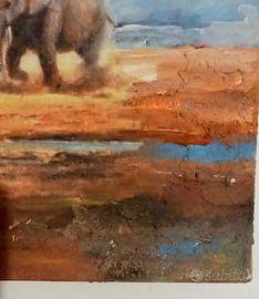 quadro con elefanti pittorico e materico con fiori secchi mis 50 x 40 H . cm. 4.5