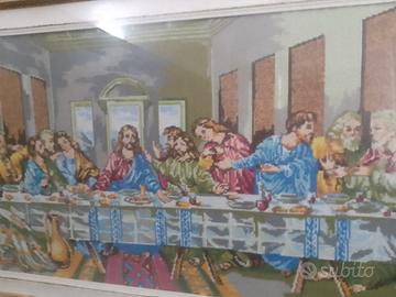 quadro fatto a punto croce raffigurante l ultima cena misure cm 118 per cm 68 veramente particolare cedo per realizzo posso spedire accetto proposte di acquisto il prezzo indicato e relativo