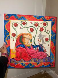 Quadro su tela che raffigura la falconeria nel medioevo!! Dipinto a mano Si possono eseguire altri dipinti su richiesta