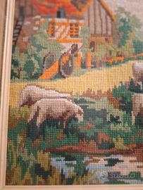 quadro ricamato con punto croce. cornice in legno. ottime condizioni