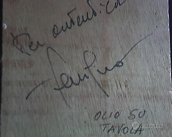 Piccola opera 24 x 15, finemente incorniciata (cornice OMAGGIO), - OLIO su Tavola - del pittore Luigi Ferrigno. Info sull'artista: Nato a Messina nel 1949, si diploma all'istituto d'arte, si trasferisce a Roma dove frequenta l'Accademia di Belle Arti, partecipando a diversi concorsi di pittura. Nel 1972 ritorna in Sicilia e tiene la sua prima personale nella sua città natale. Da lì comincia un percorso artistico che mai si è fermato fino ad oggi, tenendo varie mostre di pittura personali in tutta Italia. Hanno scritto di lui : "Giornale di Sicilia", "Gazzetta del Sud", "Corriere di Reggio", "Bolaffi Arte", "Pittori del Sud", "Artisti dello Stretto", "Il Gruppo", "Il Soldo", "Ragusa Sera ", "La Procellaria", "Artisti Italiani Contemporanei", "Art Leader".