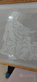 Quadro "Gesù con i pargoli", interamente fatto a mano in Filet. Compreso di cornice. Retro coperto con gancio centrale. Spedizione a parte