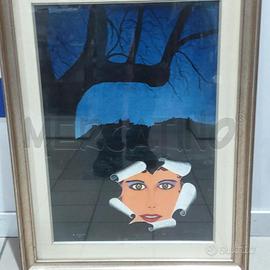 QUADRO FIOCCARDI OLIO SU MASONITE STRAPPO VISO NELL OSCURIT 40X55 CM CORNICE LEGNO ARGENTATA 57X75 CM