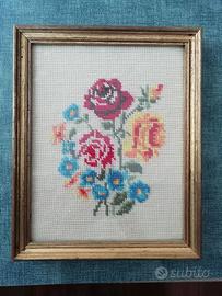 Quadro "Fiori" ricamato punto riso