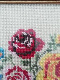 Quadro ricamato punto riso rafrigurante fiori. 21,5 x 26,5 cm.