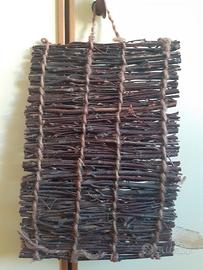 Quadro fiori secchi utilizzato pochissimo. Dimensioni: lunghezza: 28 cm, larghezza: 19 cm. Con legnetti marroni e fiori secchi di colore panna, azzurro,blu.