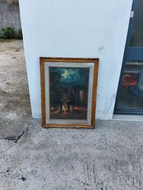 Quadro di grandi dimensioni con cornice dorata lavorata in stile, di legno