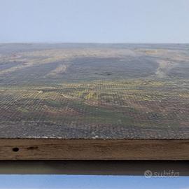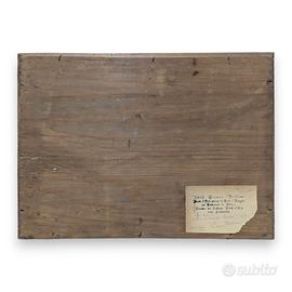 Quadro olio su tela (cm 28x38), fissato su tavola forse successiva, incorniciato con vetro (cm 38x48,5), firmato E. Calvi in basso a sinistra.