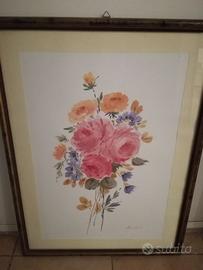 Vendo bellissimo quadro floreale firmato Enzo Vitali, noto artista per le sue opere raffinate e colorate. Il dipinto misura 54 x 72 cm con cornice inclusa, e raffigura un bouquet di fiori vivace e armonioso, perfetto per dare un tocco di eleganza a qualsiasi ambiente.