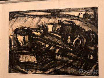 Vendo quadro in carboncino di Vittorio Morello 1909-1982 . Artista che girato il mondo a seguito dell’ arruolamento nell’esercito italiano in africa. In alcune opere ha risentito dell’influenza futurista dell’epoca come in questo caso.