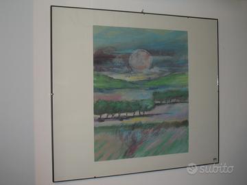 Quadro "Tramonto" di Giorgio Manzali, disegno a tempera eseguito a mano su carta, 70x80 cm. Prodotto nuovo da esposizione, vendiamo causa rinnovo mostra.