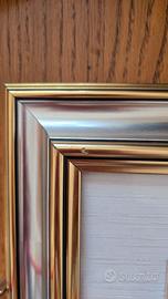Vendesi suggestivo quadro con veduta di Genova che raffigura lo storico faro della Lanterna e un antico veliero in navigazione. L'immagine è realizzata su una lastra in argento finemente incisa, caratterizzata da alternanze tra finiture lucide e satinate. Il quadro misura complessivamente 32,5 x 30 cm ed è montato con un elegante passepartout su una doppia cornice color oro e argento. Il retro dell'oggetto è sigillato, garantendo l'integrità della lastra interna che si presenta in ottime condizioni. Si segnalano due piccoli segni di usura sulla cornice, ben visibili nelle foto allegate, motivo per cui il prezzo è di soli 20 euro. Disponibile per la spedizione o ritiro a mano presso il domicilio a Sori o Genova, o presso un punto concordato a Genova.