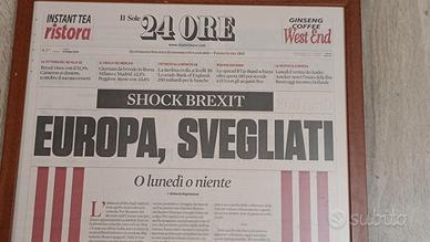 Quadro giornale quotidiano SHOCK Brexit Europa Svegliati Il Sole24ore 25 giuno 2016 economia Regno Unito Europa Euro europa euro brexit cornice giornalismo economia finanza