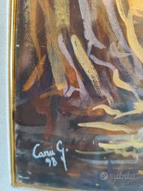 Quadro di Giovanni Canu pittore di Ossi rappresentante 2 cavalli bianchi del 1998 da cambiare la cornice.Si valutano offerte......