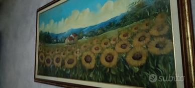 quadro raffigurante girasoli 130 l 70 h con bella cornice legno antichizzata