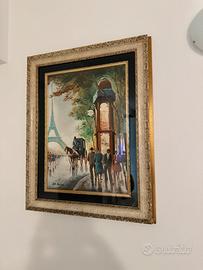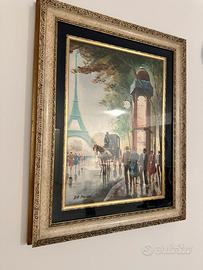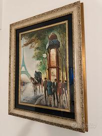 Quadro Giulio di Simone olio su tela raffigurante Parigi , Tour Eiffel completo di cornice d’oro.