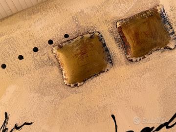 Quadro moderno floreale con petali in rilievo materici decorati a mano e foglia ora Ramos. Misura 70x140