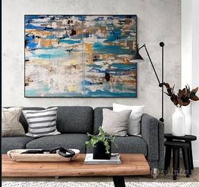 Due tele compongono la stessa opera per un totale di 140 x 100 cm già intelaiate