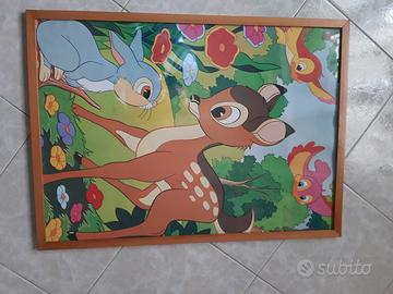 Grande quadro di Bamby cerbiatto, ideale per cameretta , bello e vivace. Misure 52 x 72. Cornice di legno chiaro e vetro. Vendo a euro 20 zona romaest.