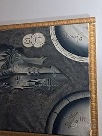 Quadro decorativo di grandi dimensioni con splendida scena paesaggistica (mare, palme e barche) realizzata in rilievo con effetto 3D. Cornice importante in stile dorato, ideale per salotto, ingresso, soggiorno o ambienti ampi.