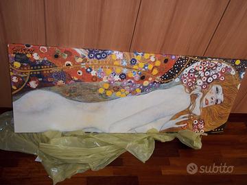 Vendo quadro stampa su tela "Serpenti d'acqua" di Gustav Klimt introvabile di queste dimensioni. Quadro grande (58 cm x 142 cm) ideale per dare un tocco decotivo alla vostra casa, ottimo anche come idea regalo. Quadro nuovo e mai esposto, sempre tenuto in mansarda avvolto nella sua pellicola, ben protetto, vendo causa inutilizzo.
