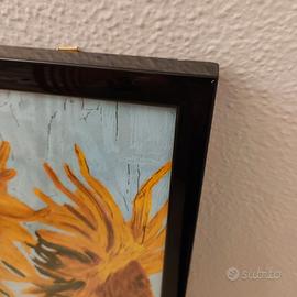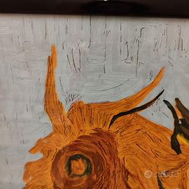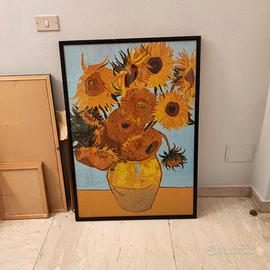 VENDO QUADRO RIPRODUZIONE SU TELA "I GIRASOLI" DI VAN GOGH. INCORNICIATO E PROTETTO. CORNICE IN LEGNO LACCATO NERO DIMENSIONI 73 X 103 CM CONDIZIONI OTTIME PREZZO 30 EURO RITIRO DIRETTO