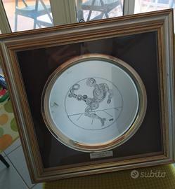 il calcio di Salvator Dalì piatto sterigrafato in metallo argentato diametro 28 entro cornice.